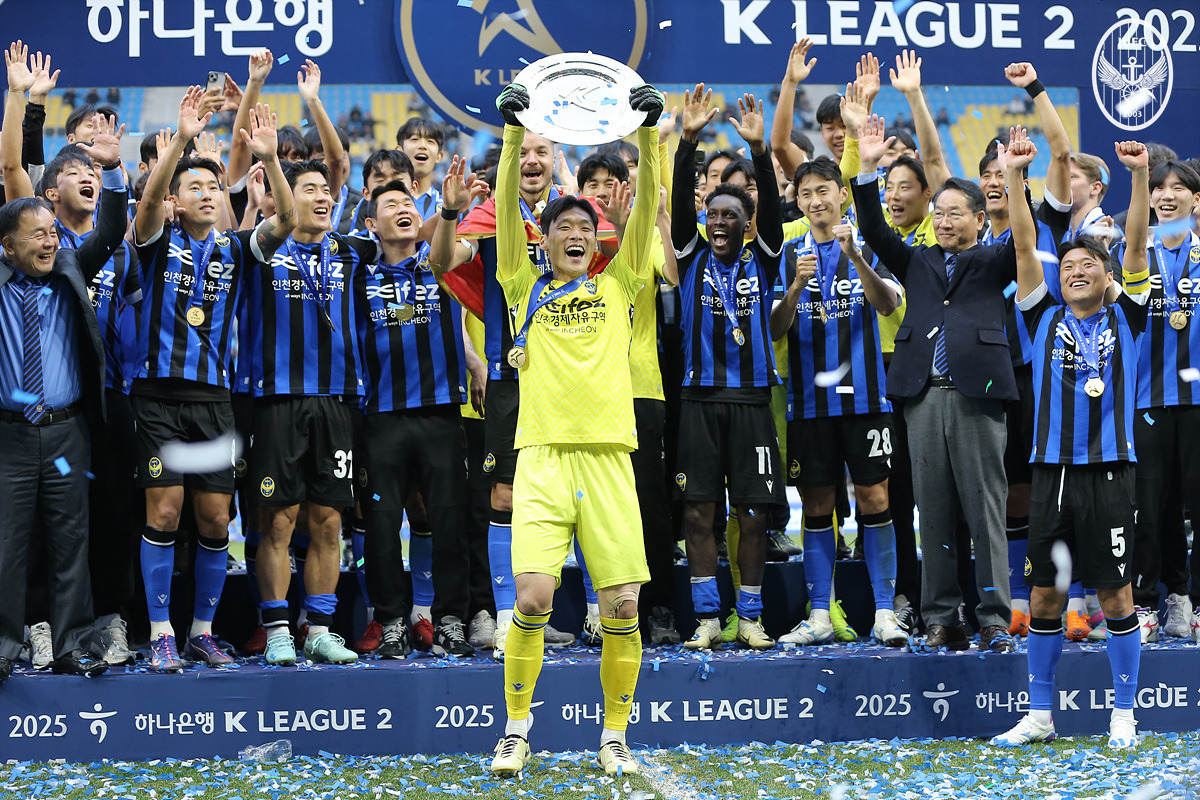 윤정환 감독이 이끄는 인천유나이티드는 지난 23일 인천축구전용경기장에서 열린 '하나은행 K리그2 2025' 39라운드 충북청주FC의 홈 경기에서 0-1로 패했다. 시즌 마지막 경기에서 패했지만, 일찌감치 우승을 확정 지은 인천은 팬들 앞에서 트로피를 들어 올리며 기쁨을 만끽했다. 민성준은 시즌 최종전에도 풀타임을 소화하며 마지막까지 여러 차례 선방을 보여주었다.