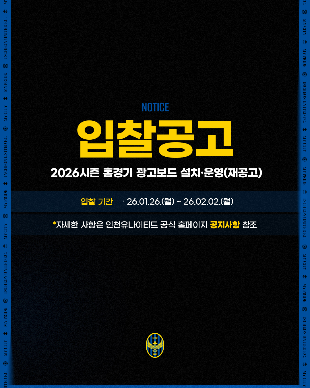 [입찰공고] 2026시즌 인천유나이티드 홈경기 광고보드 설치·운영 (재공고)