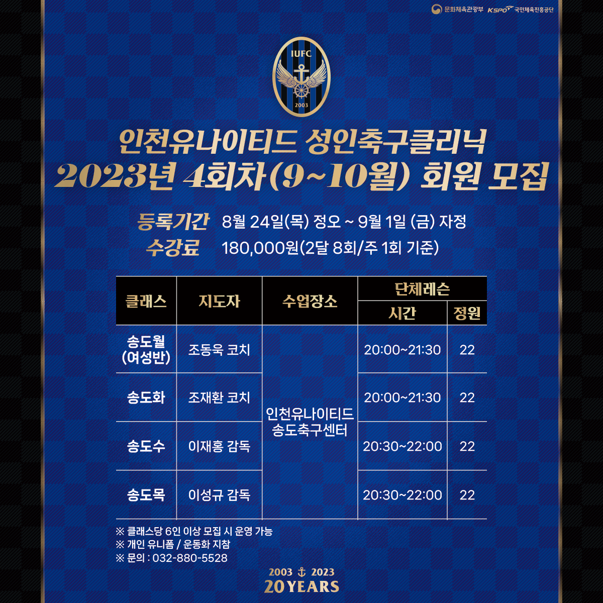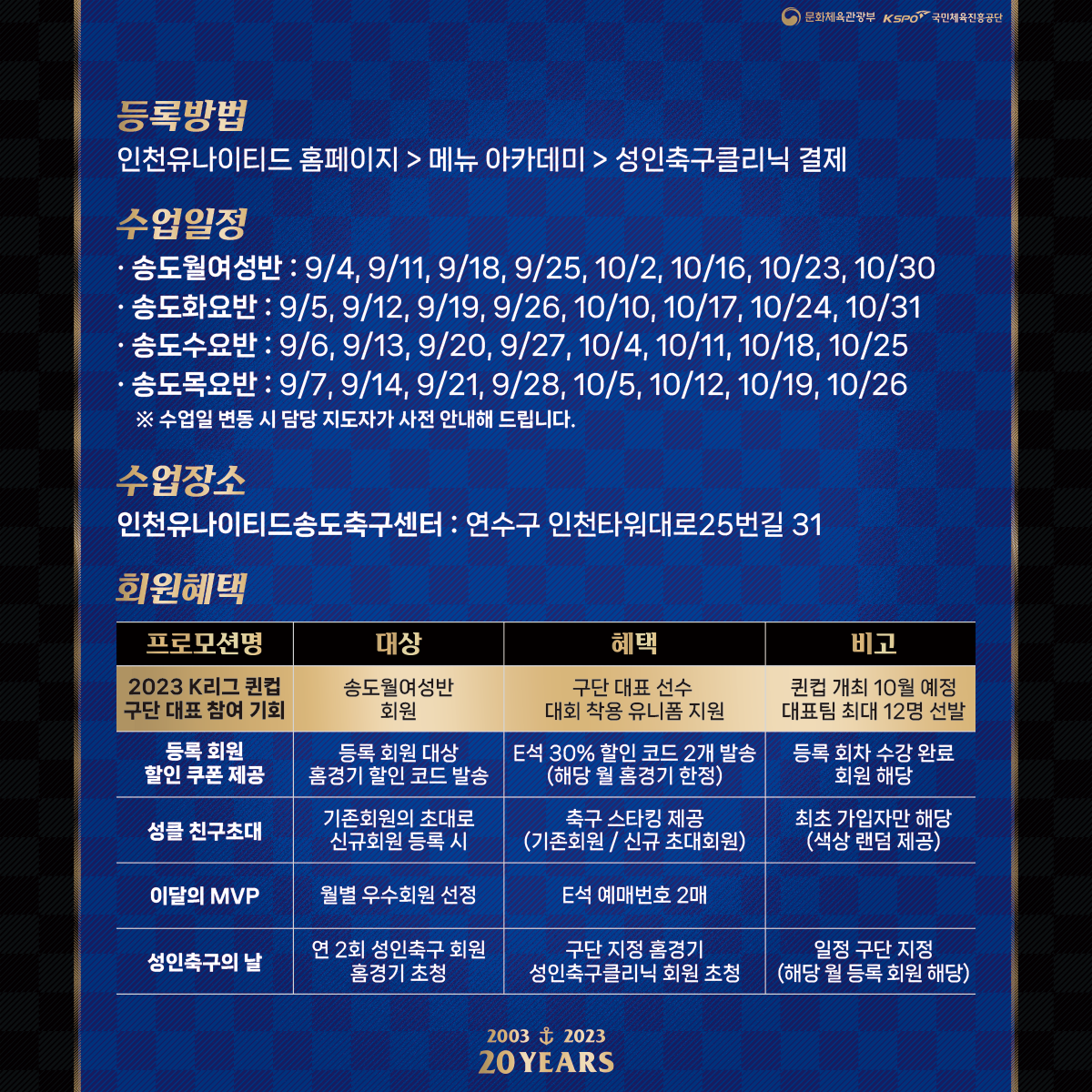 * 자세한 사항은 해당 이미지를 참고해주세요2023년도 성인축구클리닉 4회차(9월~10월) 회원 모집 안내