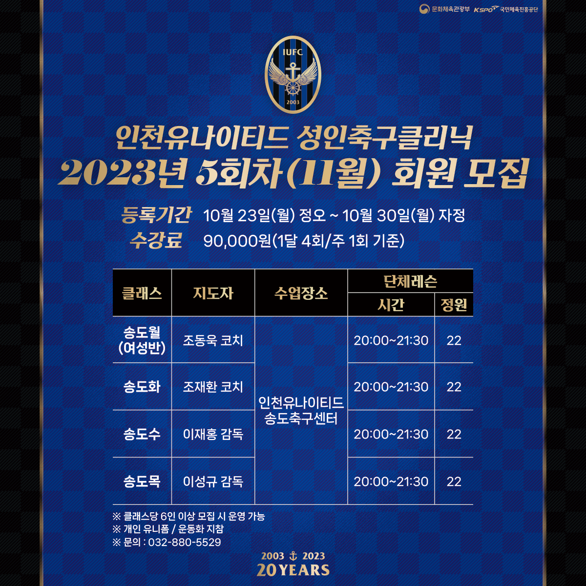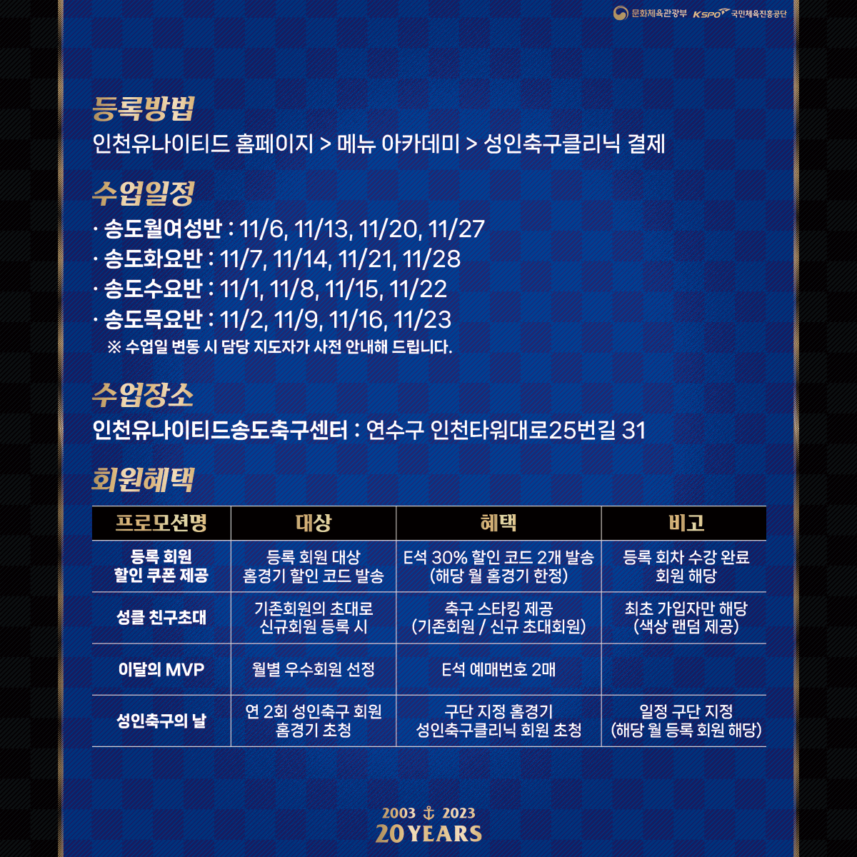 * 자세한 사항은 해당 이미지를 참고해주세요2023년도 성인축구클리닉 5회차(11월) 회원 모집 안내