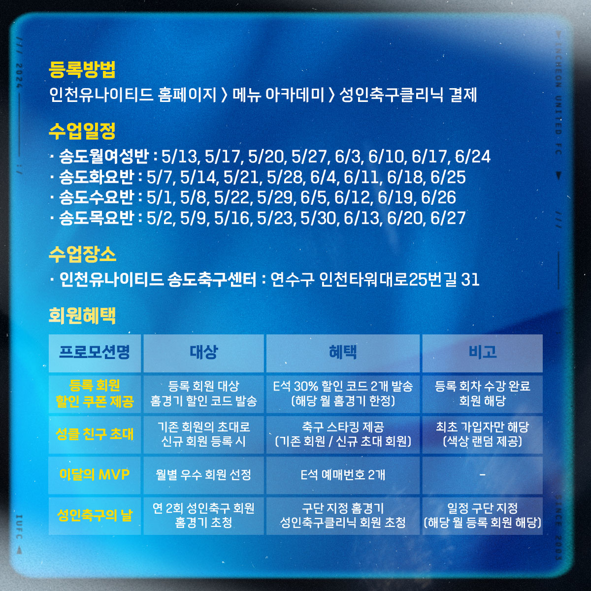 2024년도 성인축구클리닉 2회차(5월~6월) 회원 모집 안내