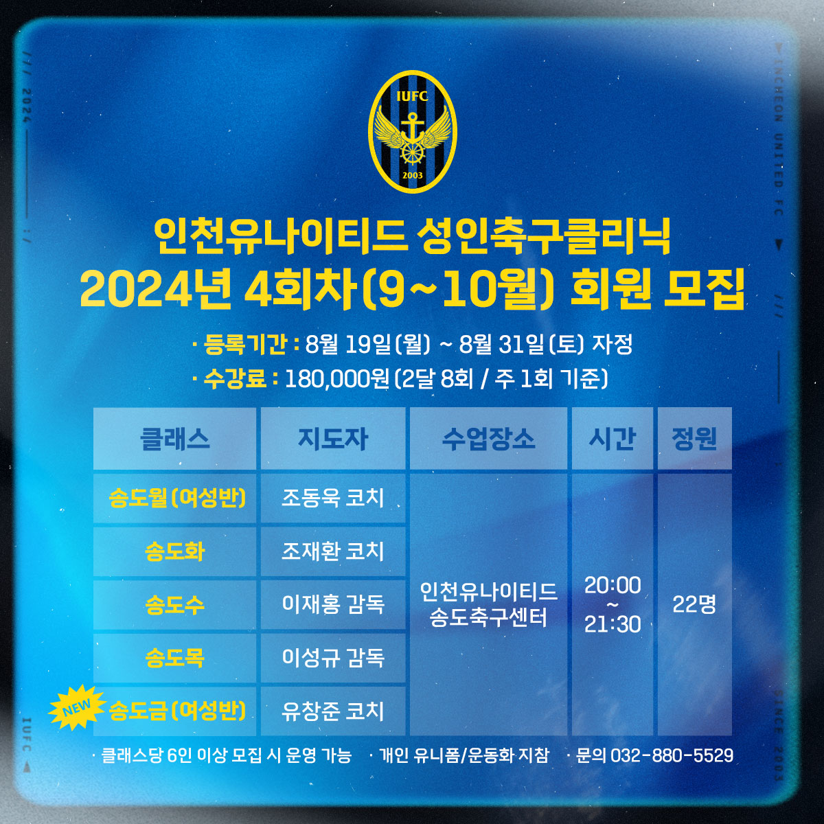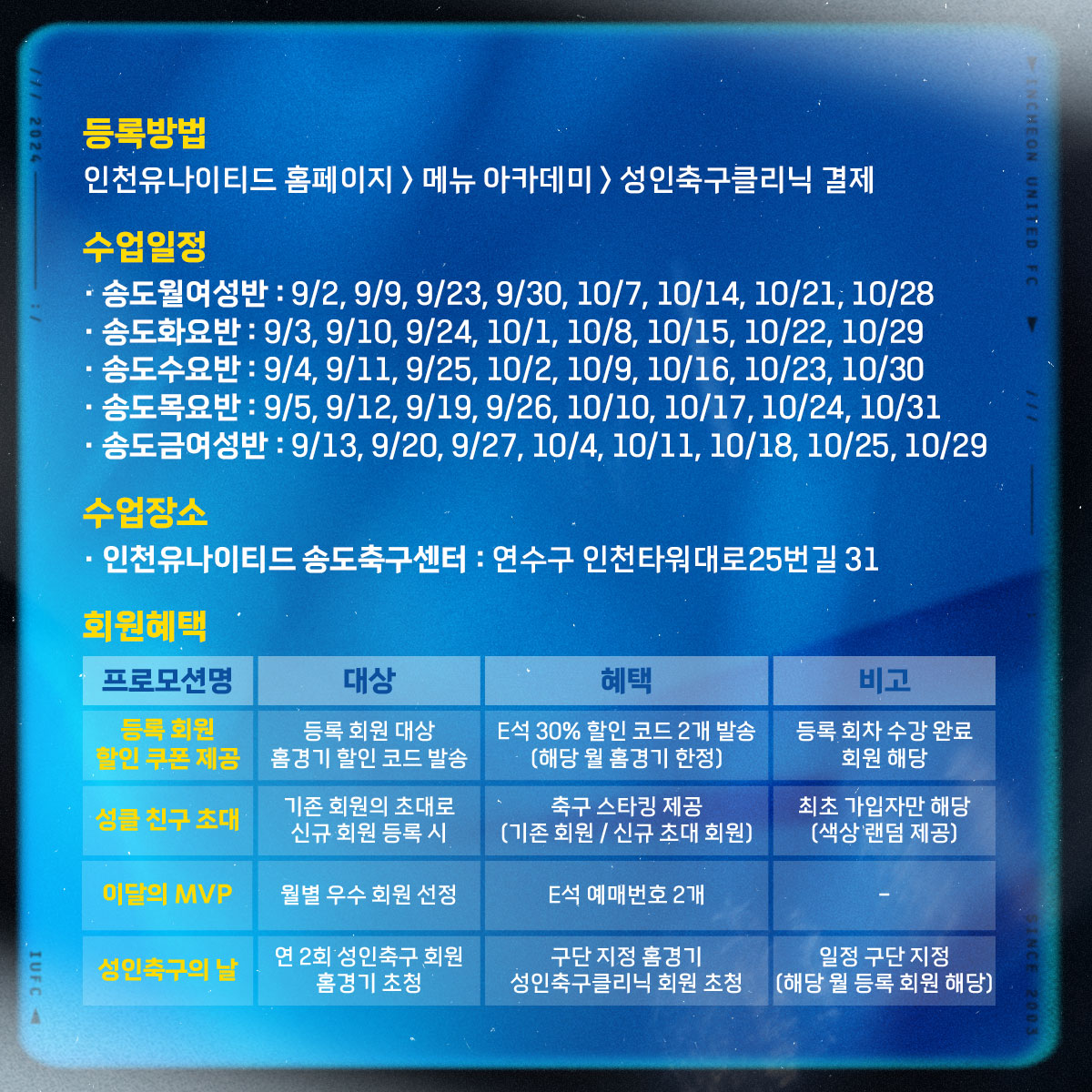 2024년도 성인축구클리닉 4회차(9월~10월) 회원 모집 안내