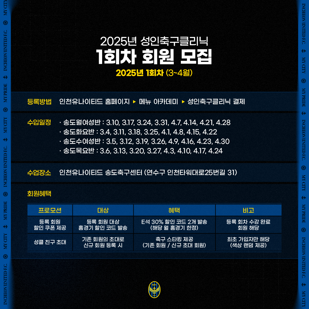 2025년도 성인축구클리닉 1회차(3~4월) 회원 모집 안내