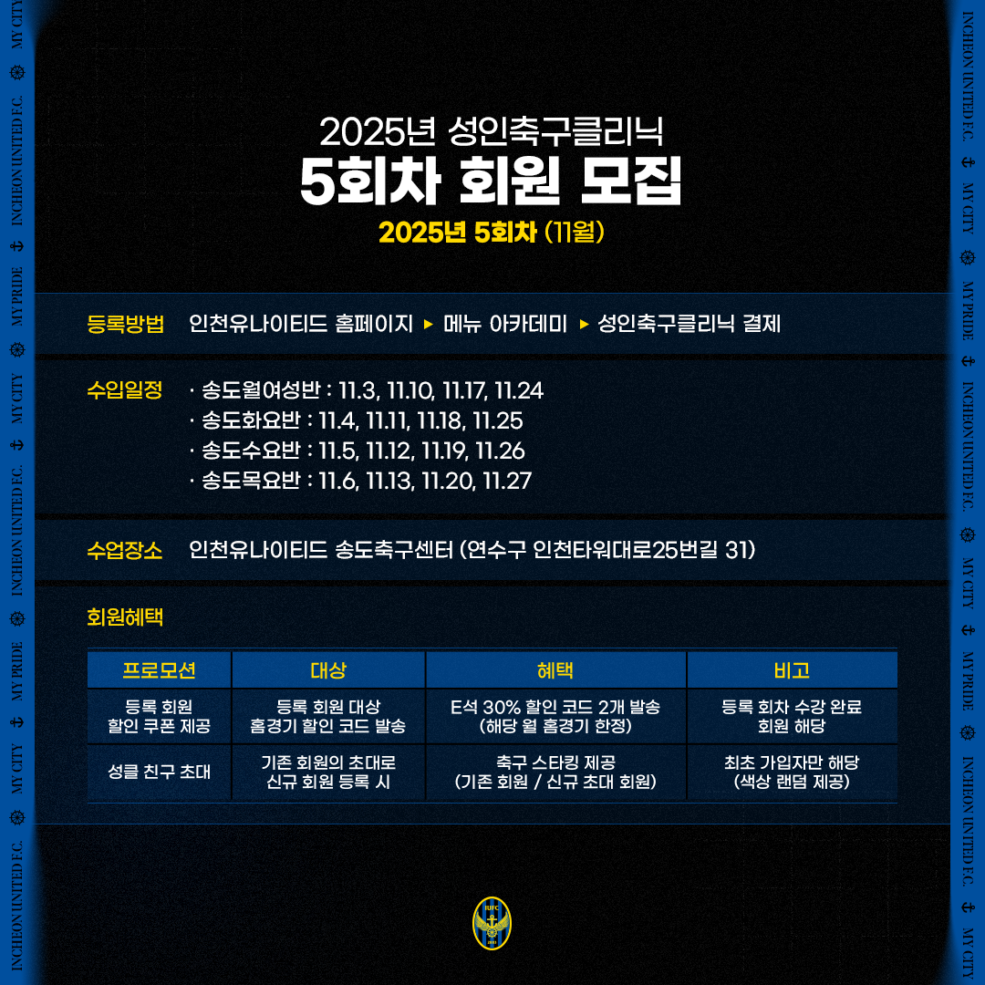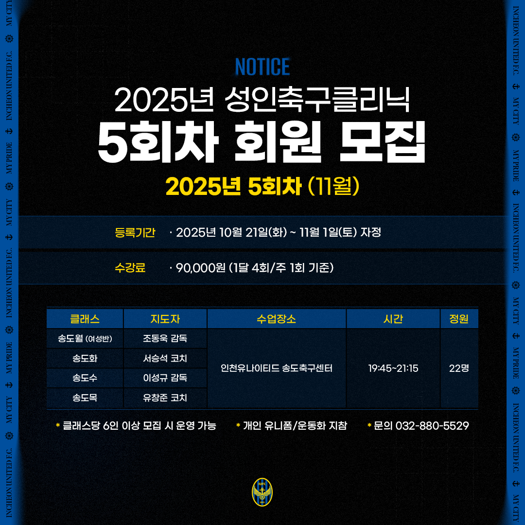 2025년도 성인축구클리닉 5회차(11월) 회원 모집 안내
