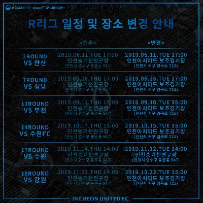 2019 인천유나이티드 경기일정 PC, 모바일 바탕화면 공유