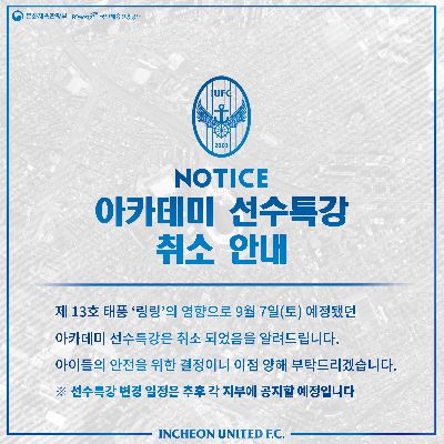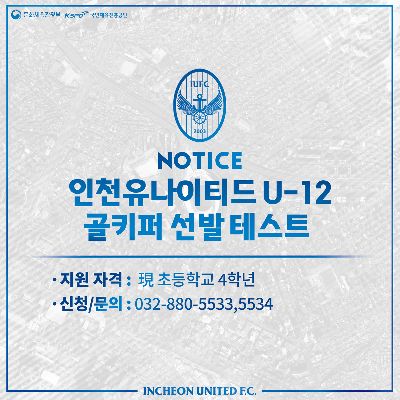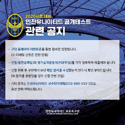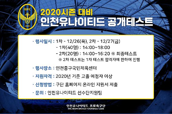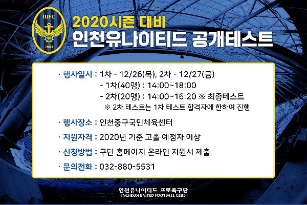 2020시즌 대비 인천유나이티드 프로팀 공개테스트 안내
