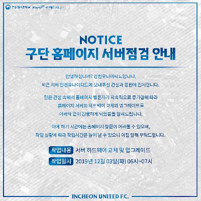 [입찰공고] 2026시즌 인천유나이티드 홈경기 광고보드 설치·운영 (재공고)
