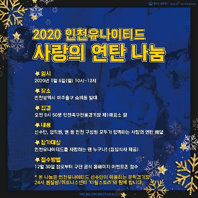 인천유나이티드 선수단 및 임직원, 연말 소외계층에 대대적 봉사