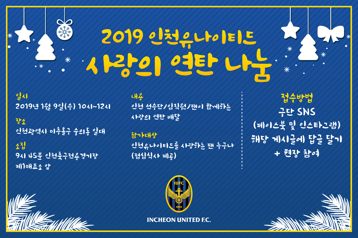인천유나이티드, 사랑의 연탄 나눔으로 따뜻한 2019시즌 출발