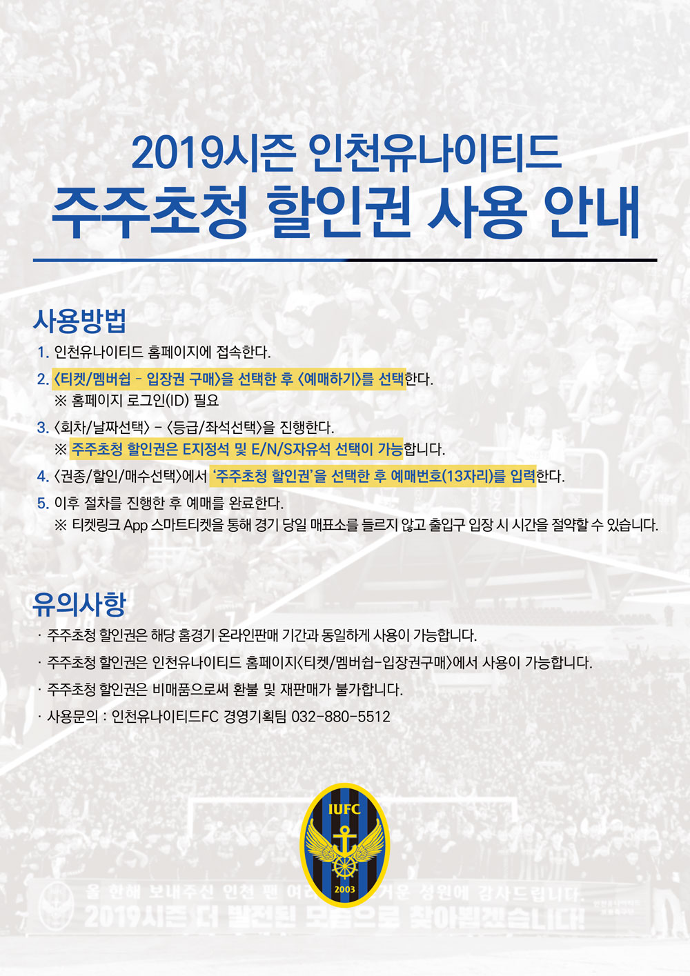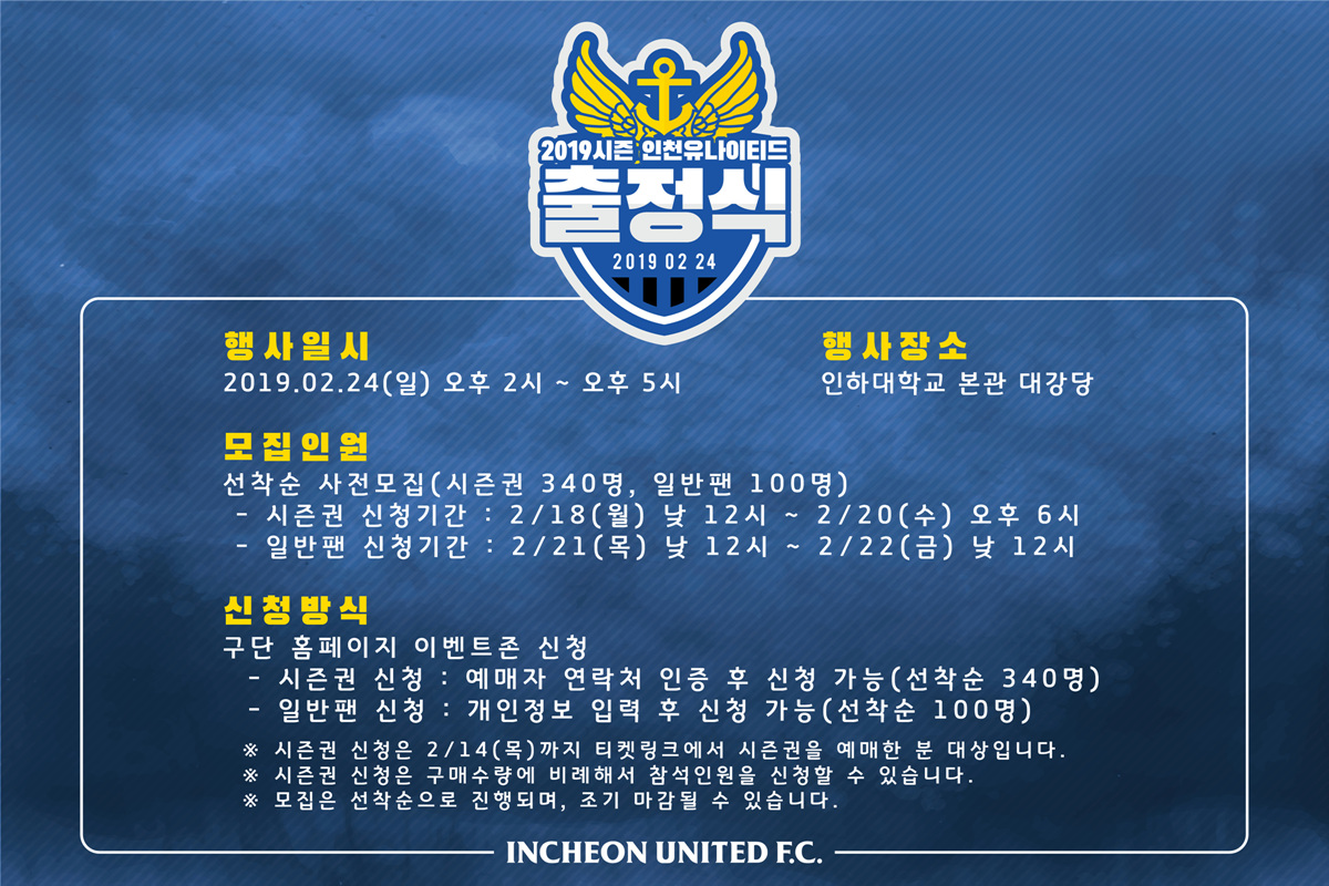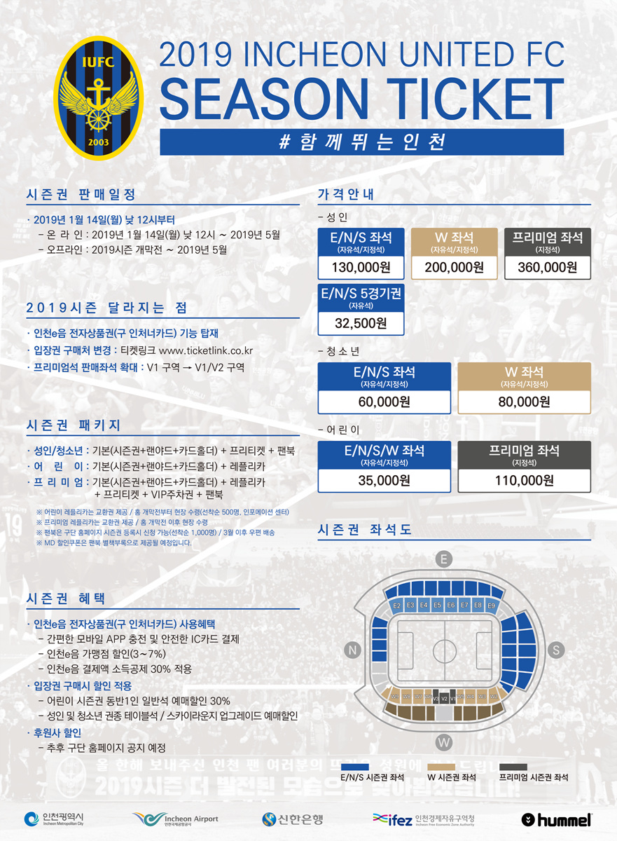 인천유나이티드, 1월 14일 정오부터 ‘2019 시즌권’ 판매 시작