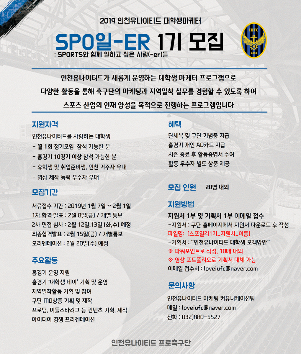 인천유나이티드, 2019시즌 함께할 대학생 마케터, ‘스포일러’ 1기 모집