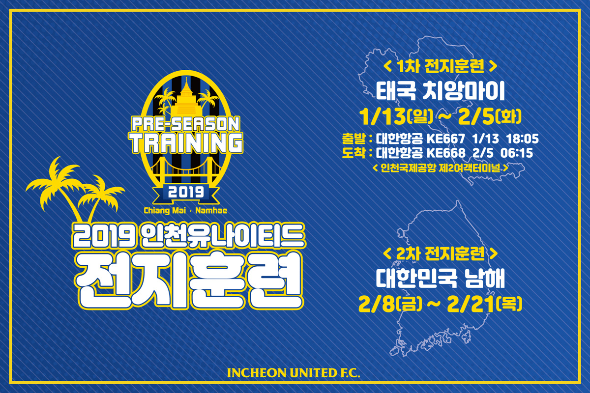 인천유나이티드, 2019시즌 대비 전지훈련 일정 확정