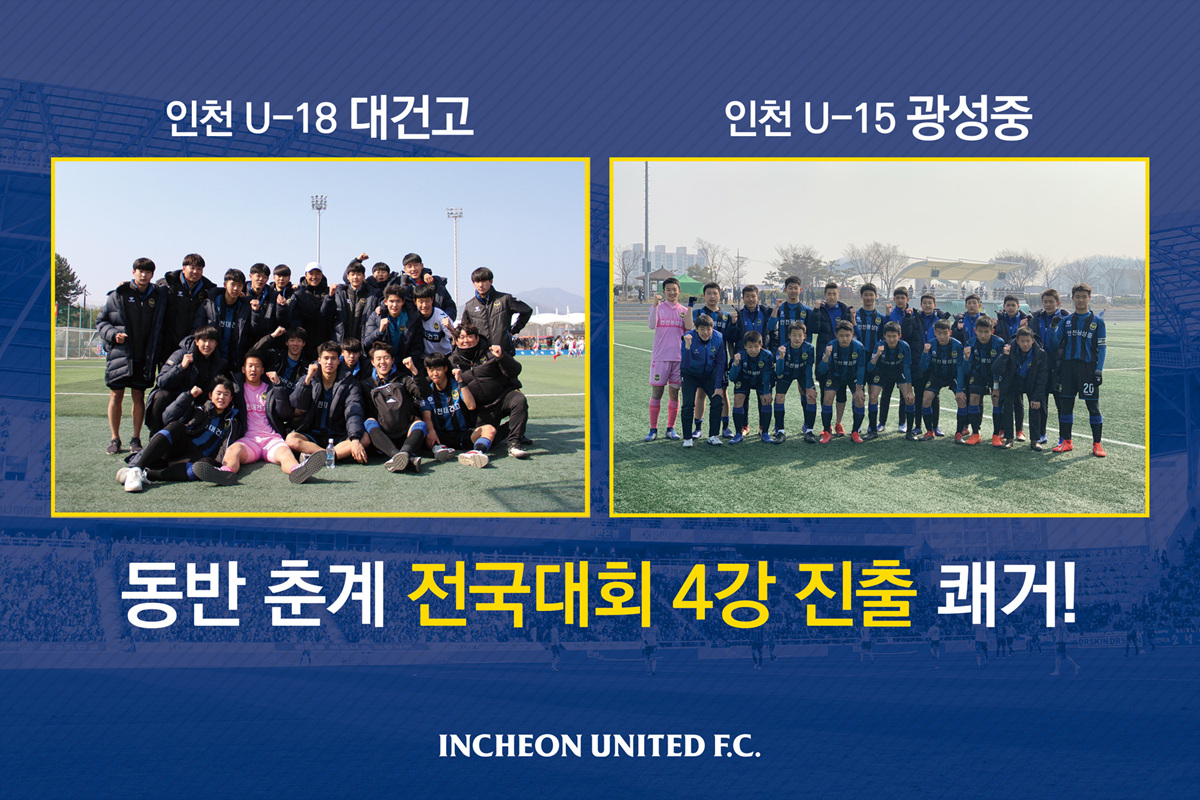 인천유나이티드 U18 인천대건고·U15 인천광성중, 예선 첫 경기 나란히 대승