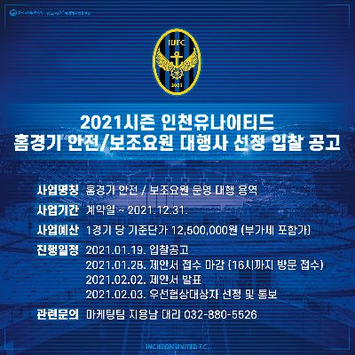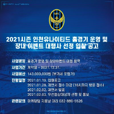 2021 인천유나이티드 홍보 영상 컨설팅 대행용역 공고