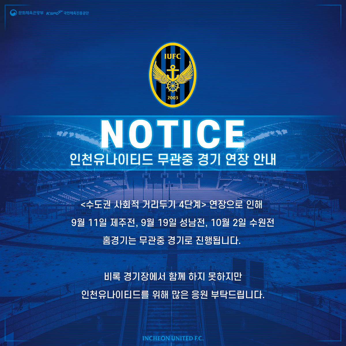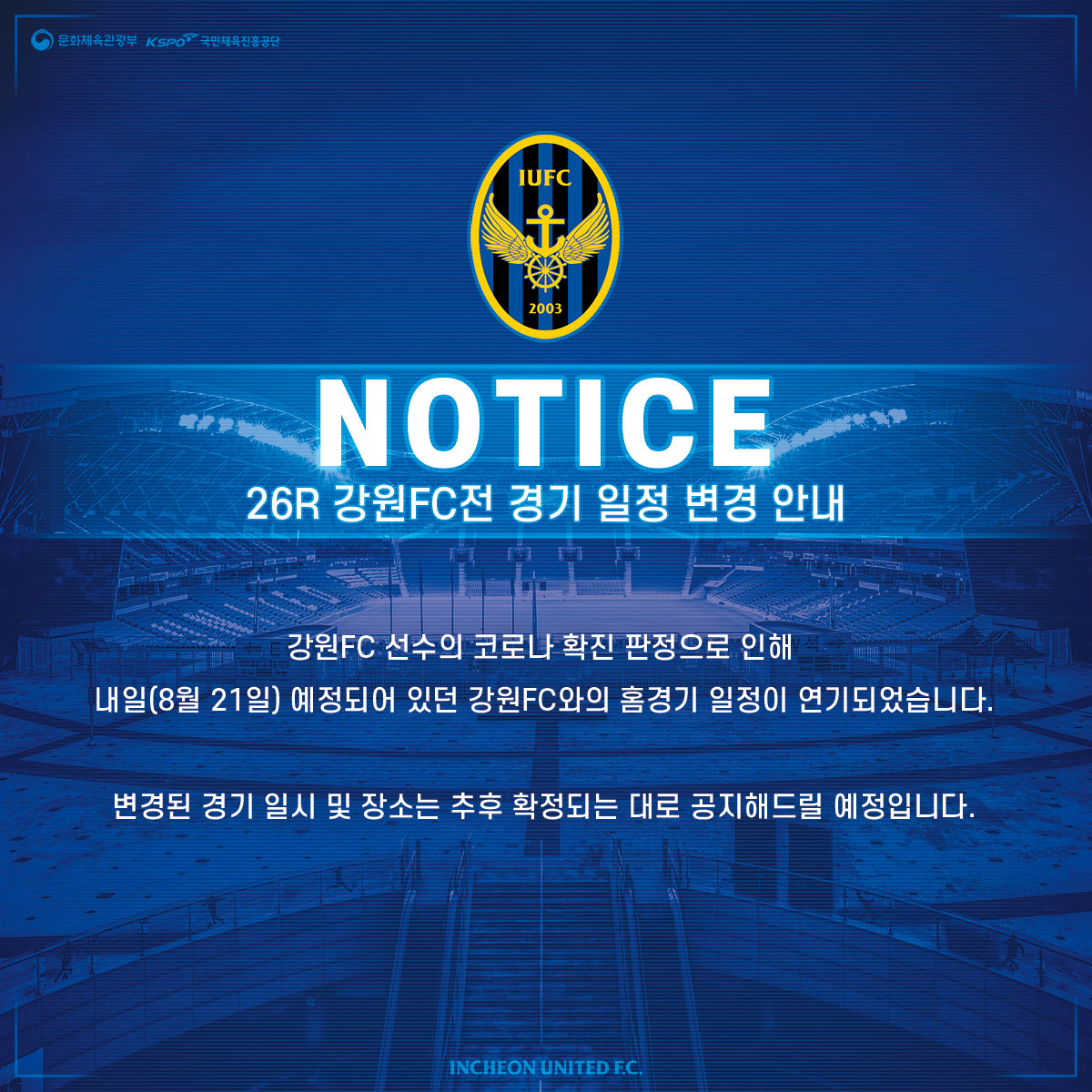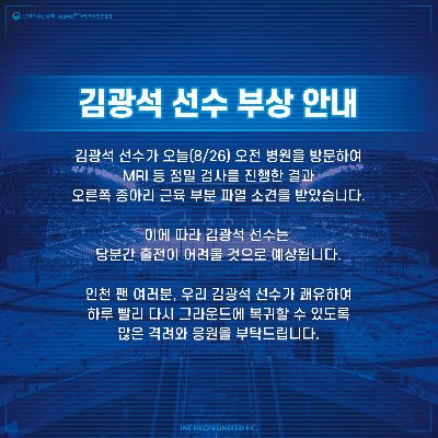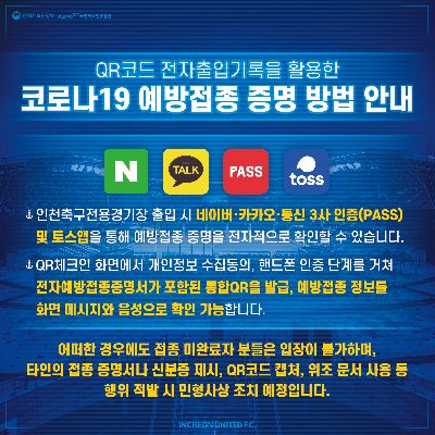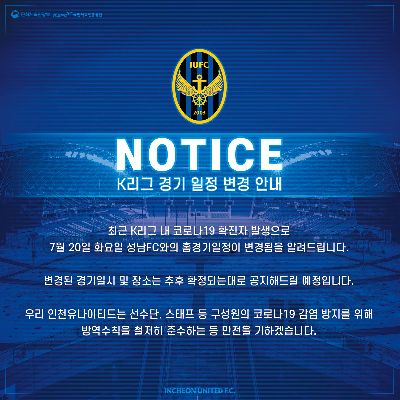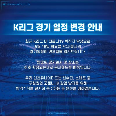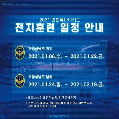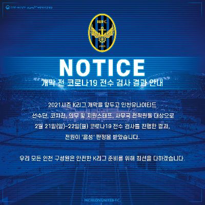 인천유나이티드 개막 전 코로나19 전수 검사 결과 안내