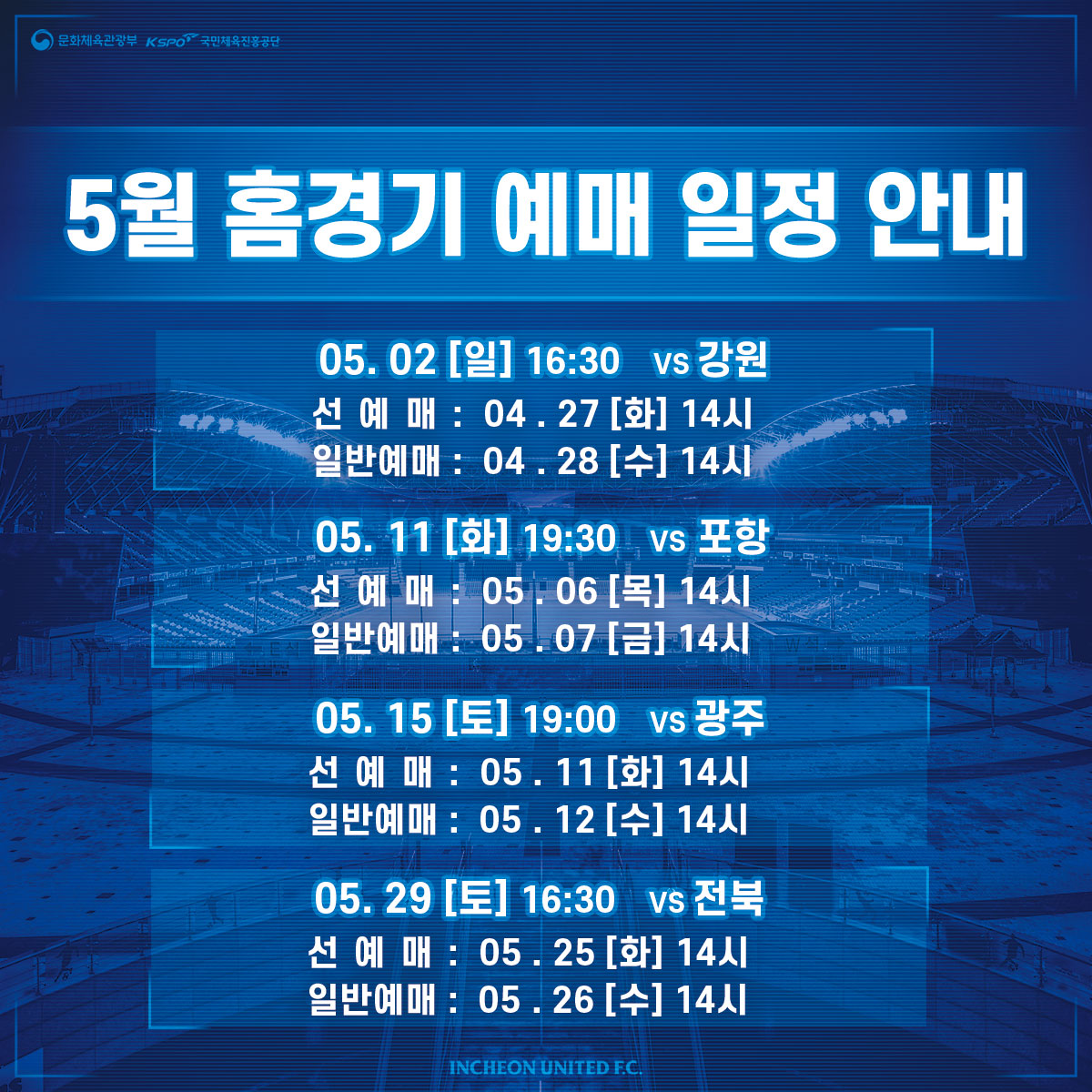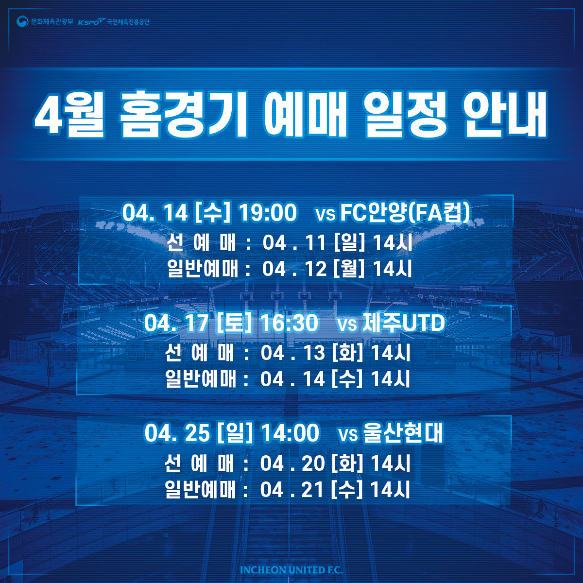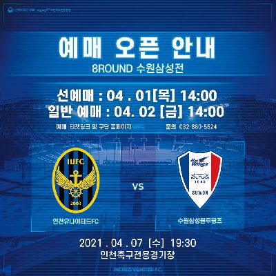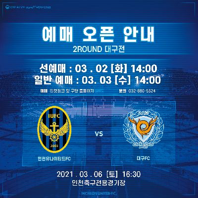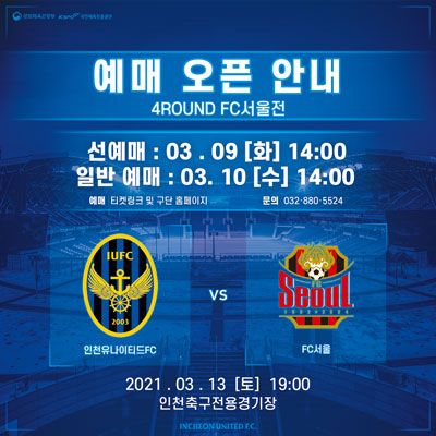 인천유나이티드 2021 홈 개막전 예매 안내
