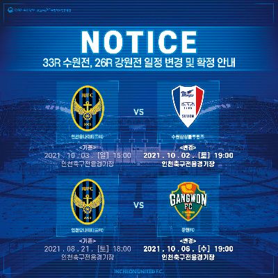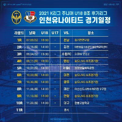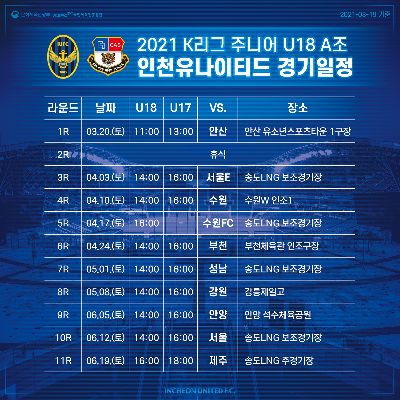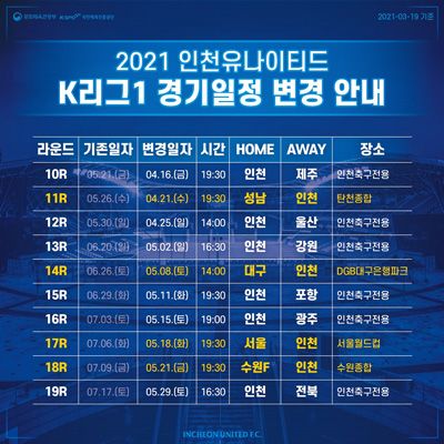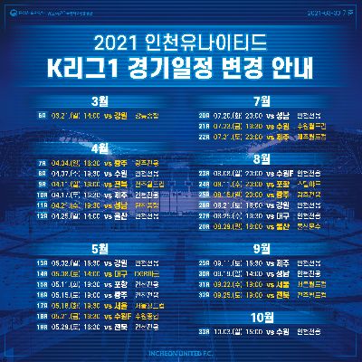2021 인천유나이티드 K리그 1 경기일정 공개