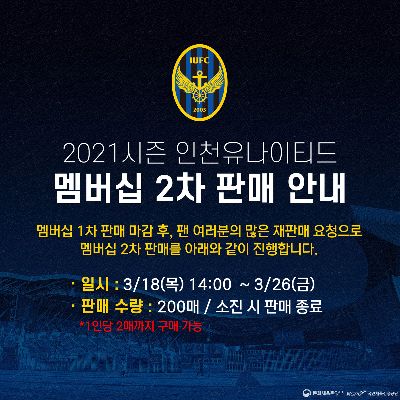 2021시즌 멤버십 2차 판매 안내