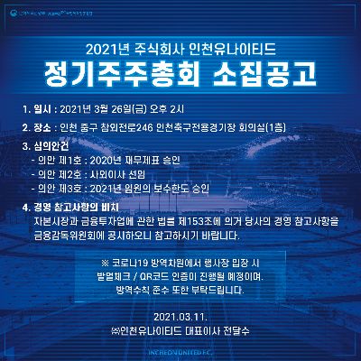 2021년 주식회사 인천유나이티드 정기주주총회 소집공고