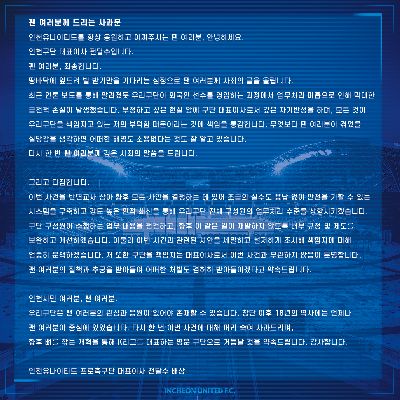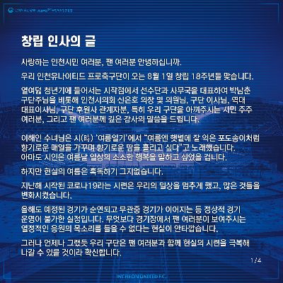 전달수 대표이사가 인천시민, 인천 팬 여러분께 드리는 신년 인사