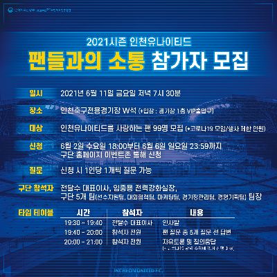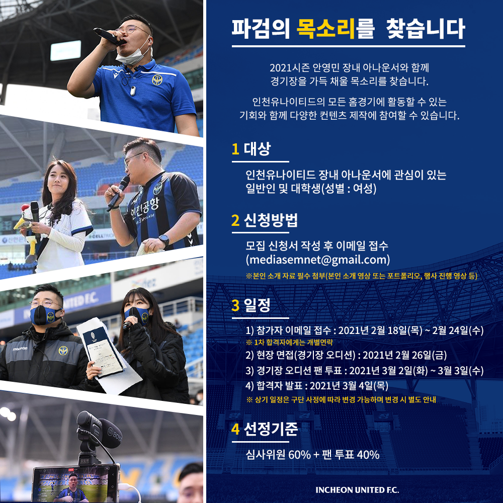 인천유나이티드 장내 아나운서 모집