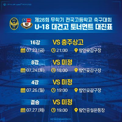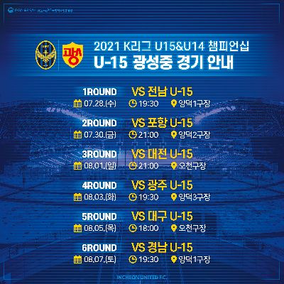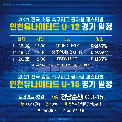 인천 U-12, U-15 꿈자람 페스티벌 일정 안내