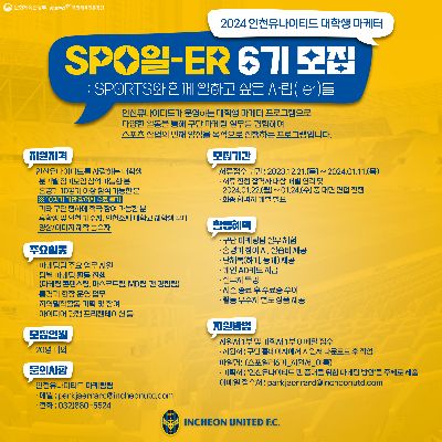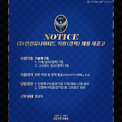 인천유나이티드 경기장관리팀 직원 채용 재공고
