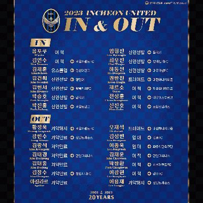 2023시즌 인천유나이티드 겨울이적시장 현황 안내