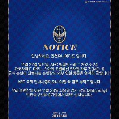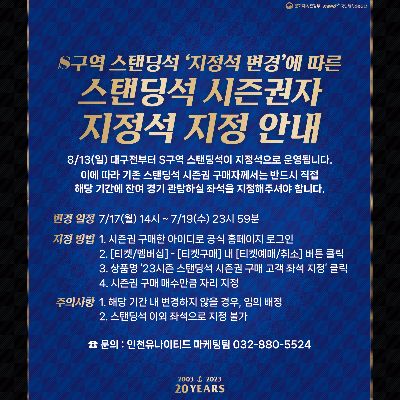 2023 인천유나이티드 창단 20주년 공식 유니폼 1차 판매 안내