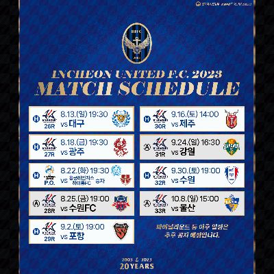 인천유나이티드, 2023시즌 마지막 홈경기 숙명의 한일전