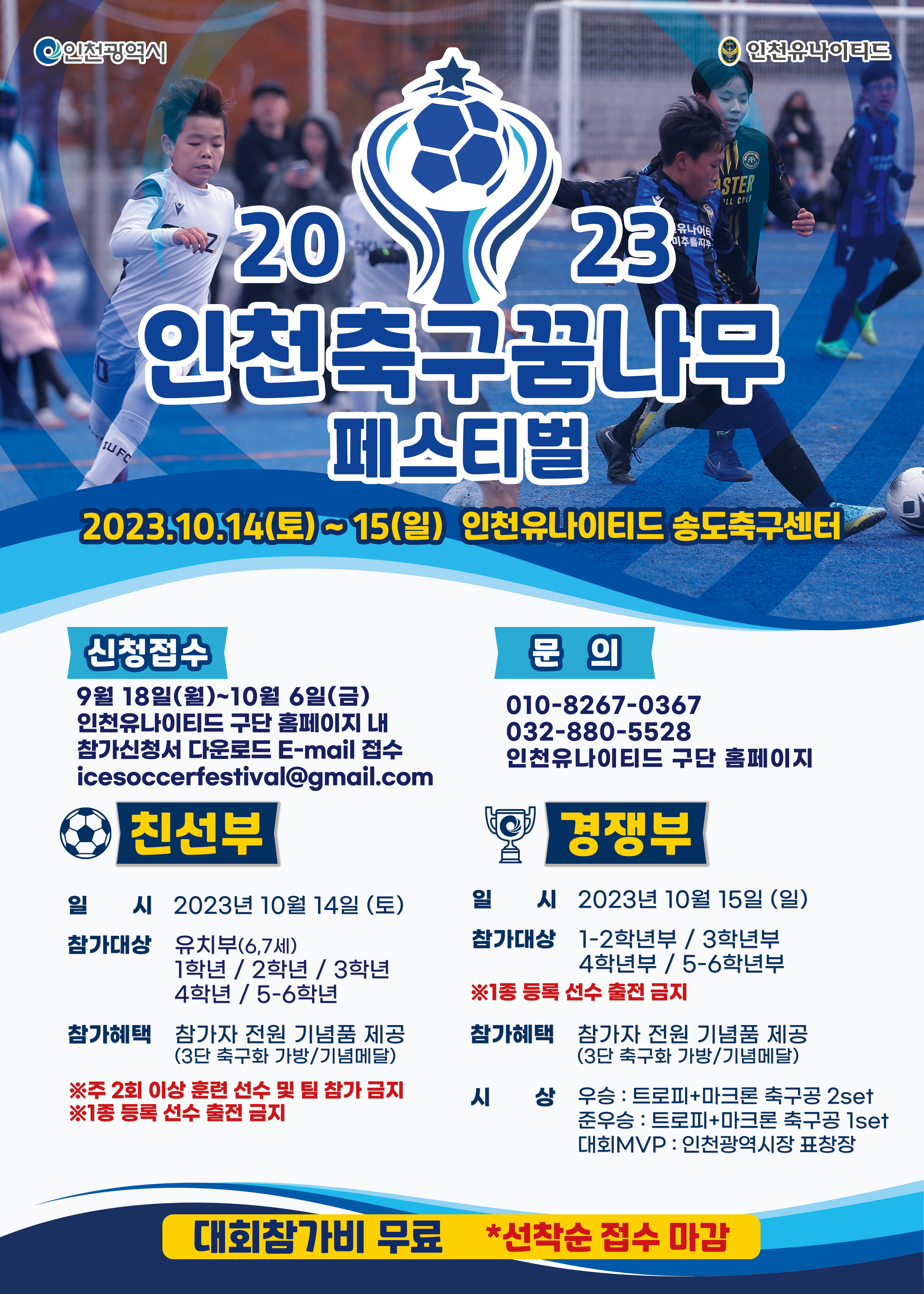 인천 U-12 2023 보물섬남해 유소년 축구페스티벌 일정 안내