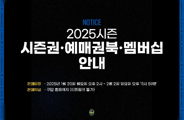 2025시즌 시즌권, 예매권북, 멤버십 판매 안내