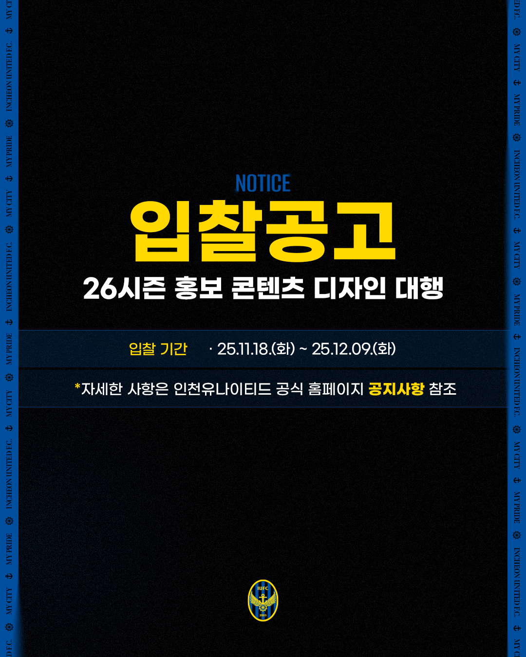 [입찰공고] 2026 인천유나이티드 홍보 콘텐츠 디자인 대행용역