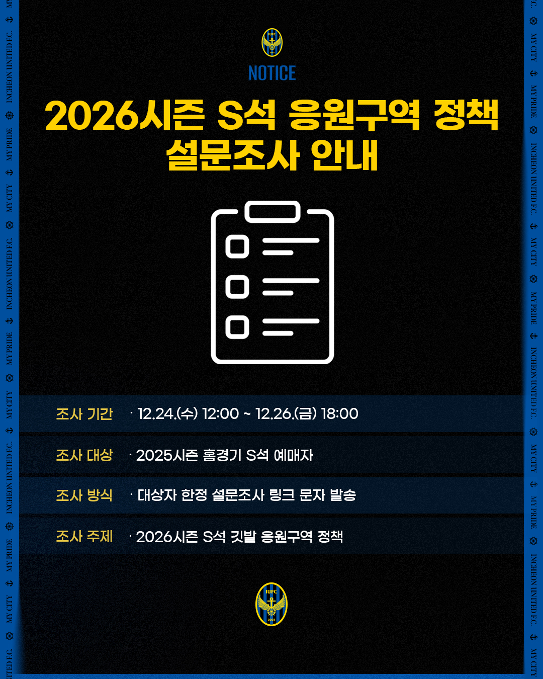 2026시즌 S석 응원구역 정책 설문조사 안내