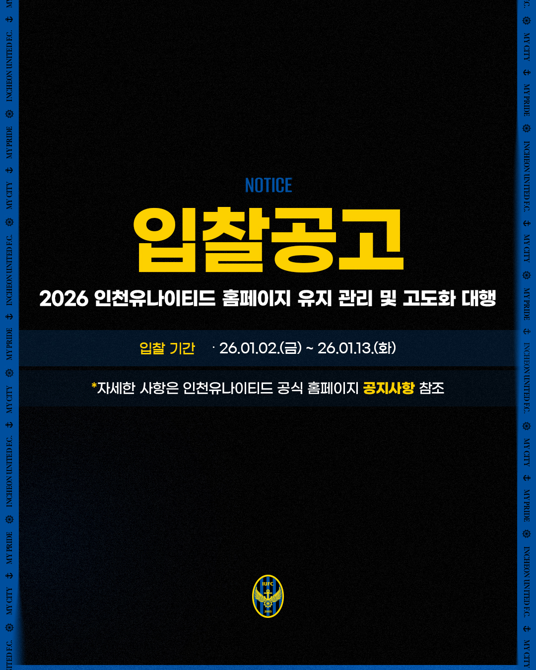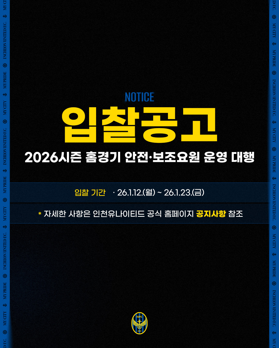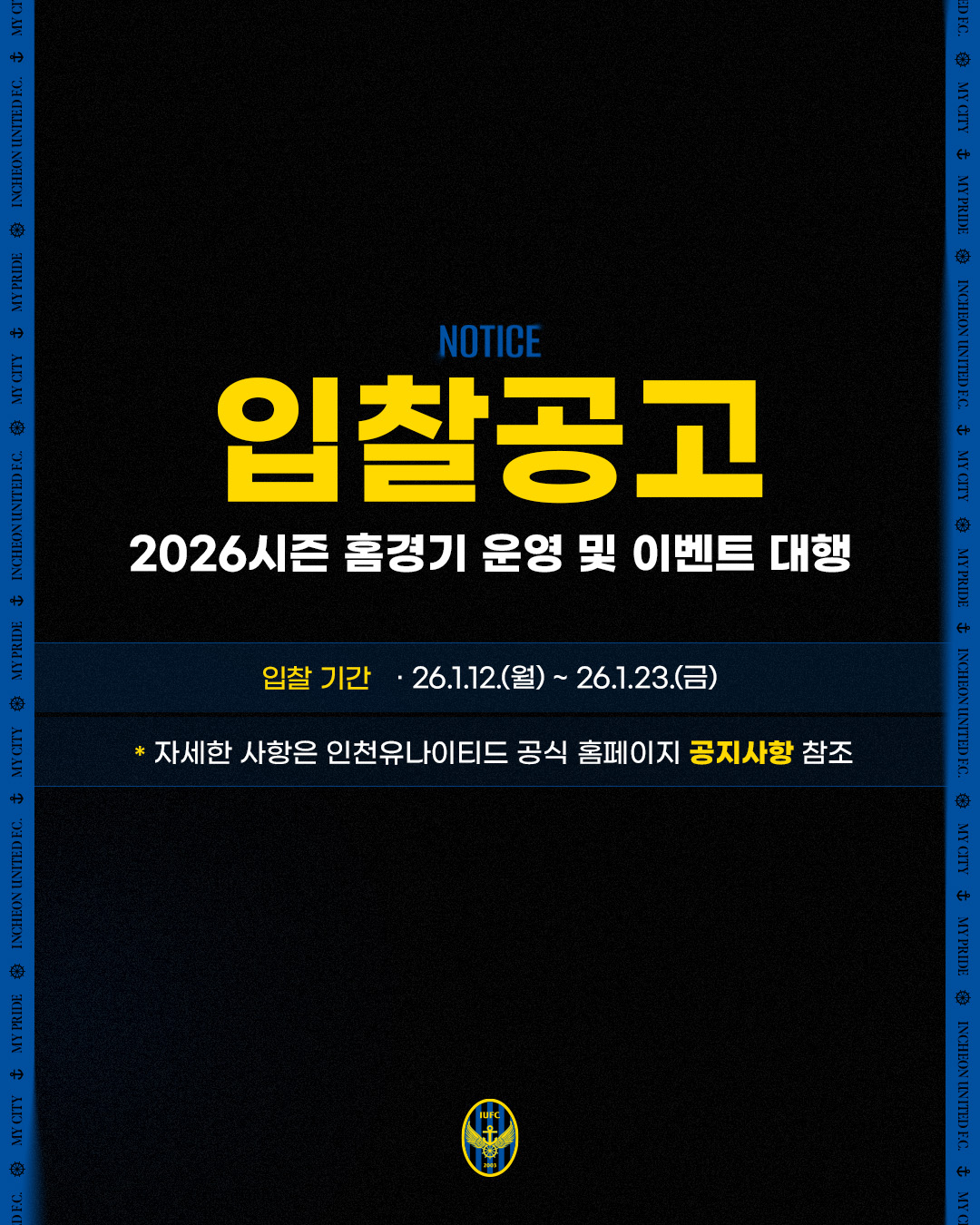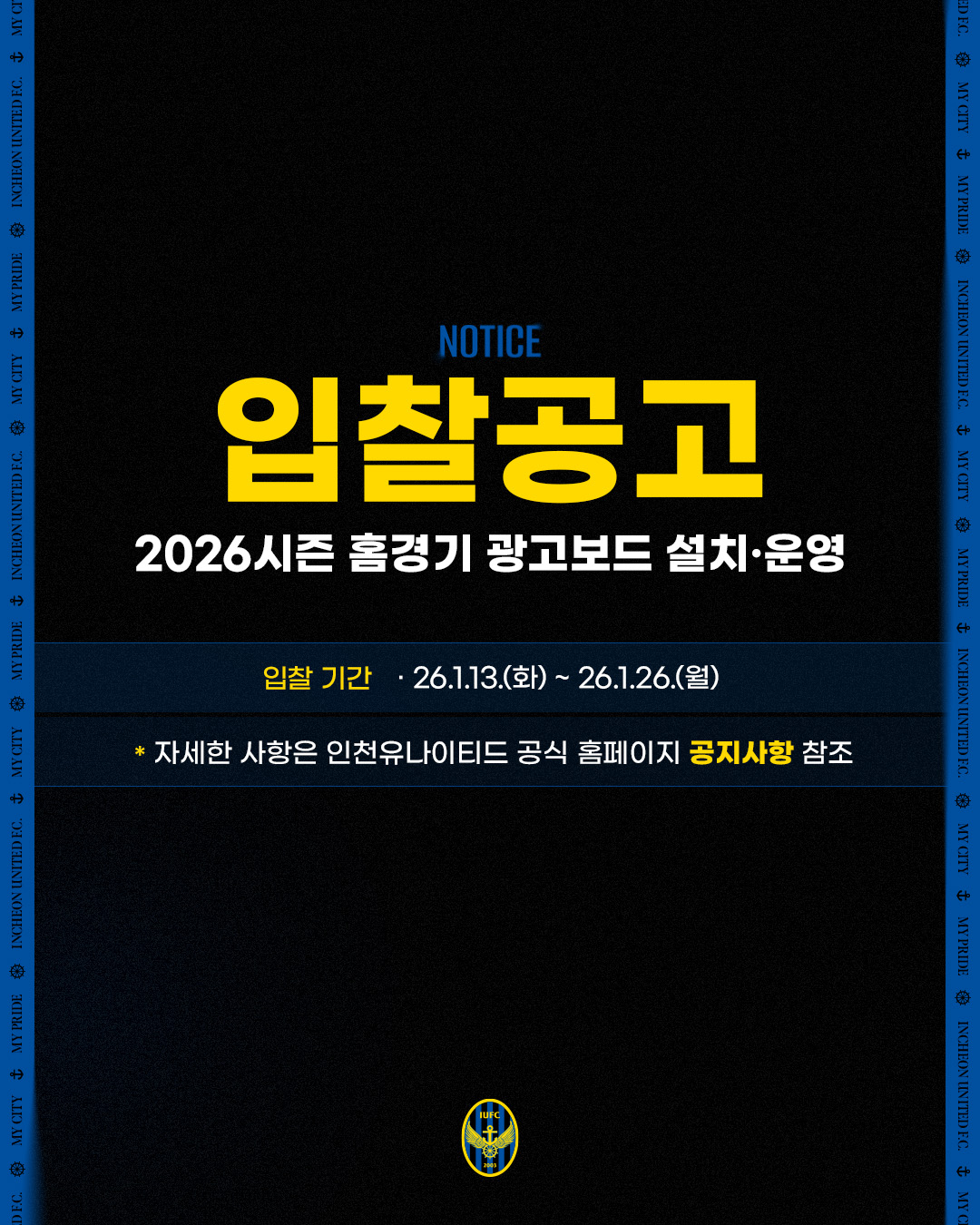 [입찰공고] 2026시즌 인천유나이티드 홈경기 광고보드 설치·운영