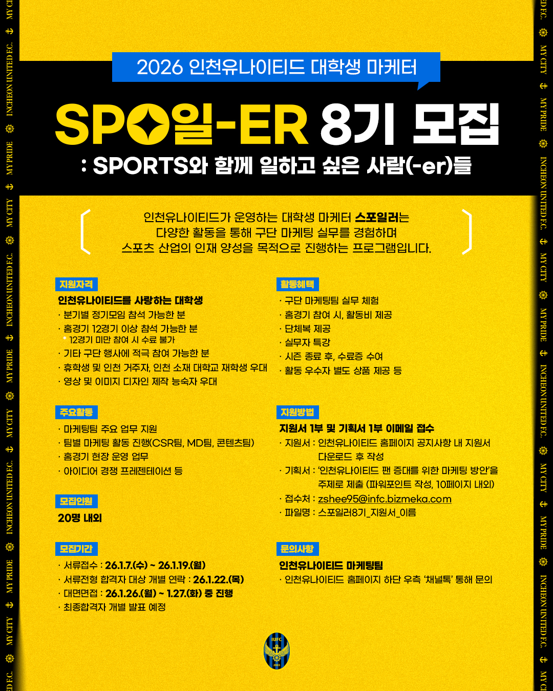 ㈜인천유나이티드 2026년 정규직 채용공고