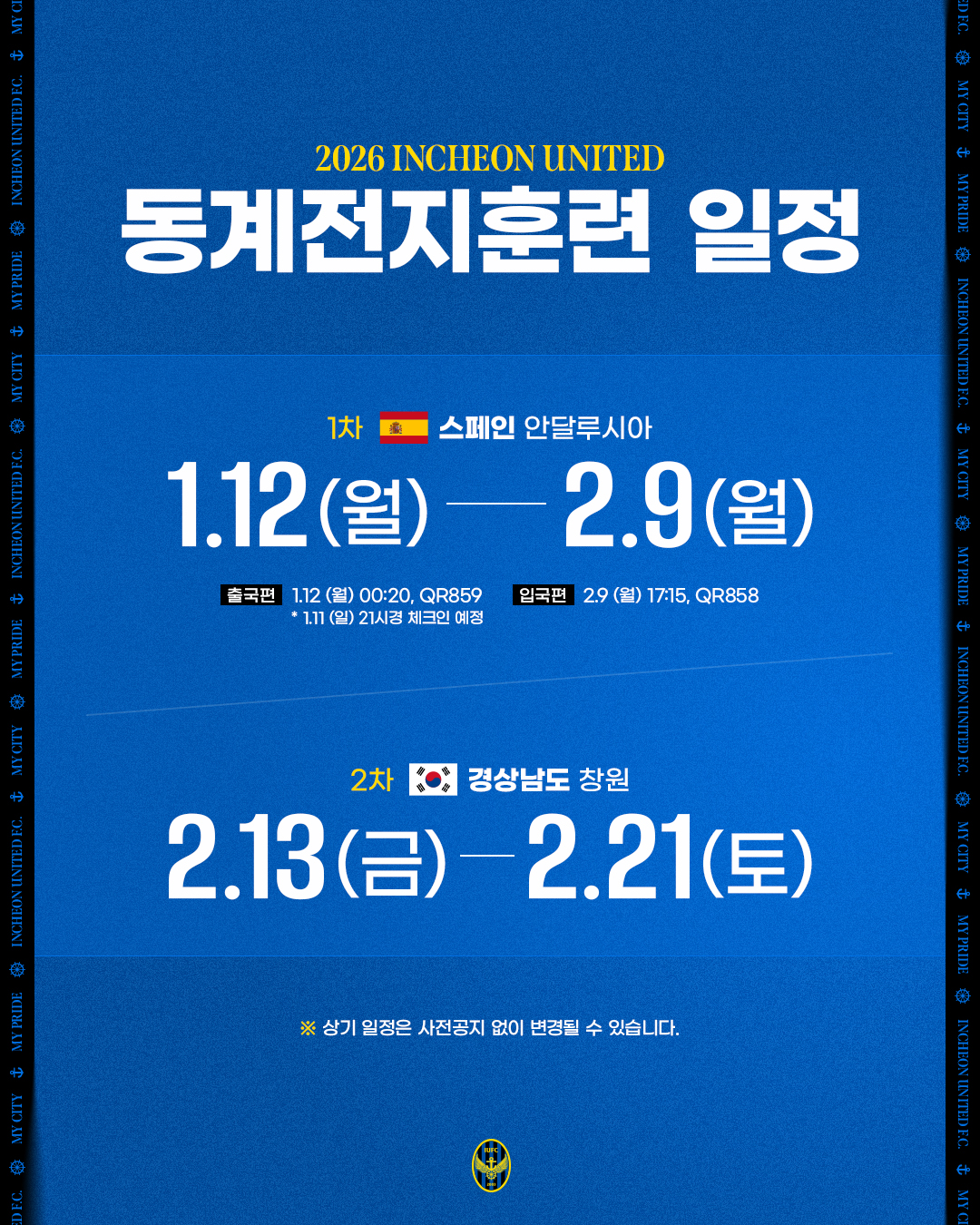 2026년도 인천유나이티드 동계 전지훈련 일정 안내