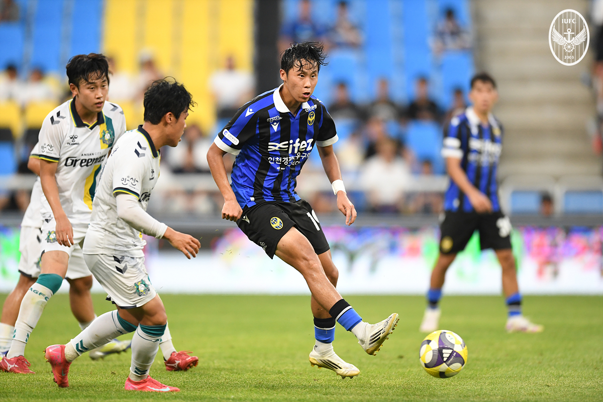 2025년 7월 27일, 인천축구전용경기장에서 열린 ‘하나은행 K리그2 2025’ 22라운드 인천유나이티드와 안산그리너스FC와의 경기 사진입니다. 모든 사진의 저작권은 인천유나이티드 프로축구단과 남궁경상 UTD기자, 이다솜 UTD기자에게 있으며 더 많은 사진은 UTD기자단 페이스북 페이지(https://www.facebook.com/iufcpress)에서 확인할 수 있습니다.
