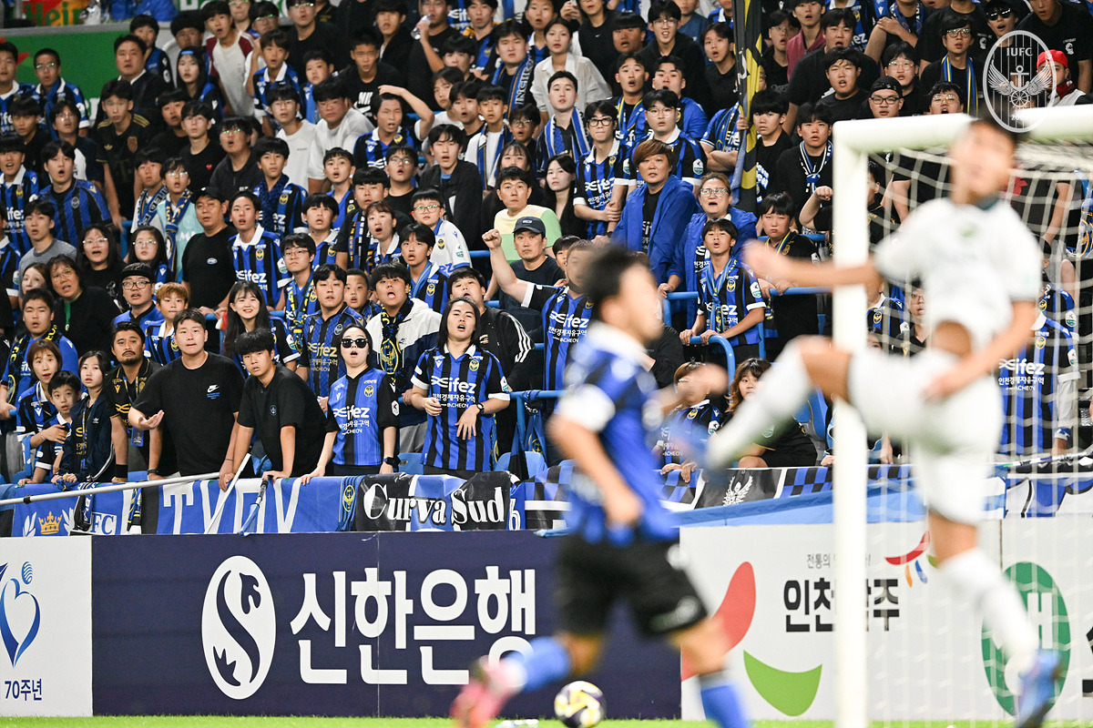 2025년 9월 20일, 인천축구전용경기장에서 열린 ‘하나은행 K리그2 2025’ 30라운드 인천유나이티드와 김포FC와의 경기 사진입니다. 모든 사진의 저작권은 인천유나이티드 프로축구단과 남궁경상 UTD기자, 이상훈 UTD기자, 이다솜 UTD기자, 임채혁 UTD기자에게 있으며 더 많은 사진은 UTD기자단 페이스북 페이지(https://www.facebook.com/iufcpress)에서 확인할 수 있습니다.