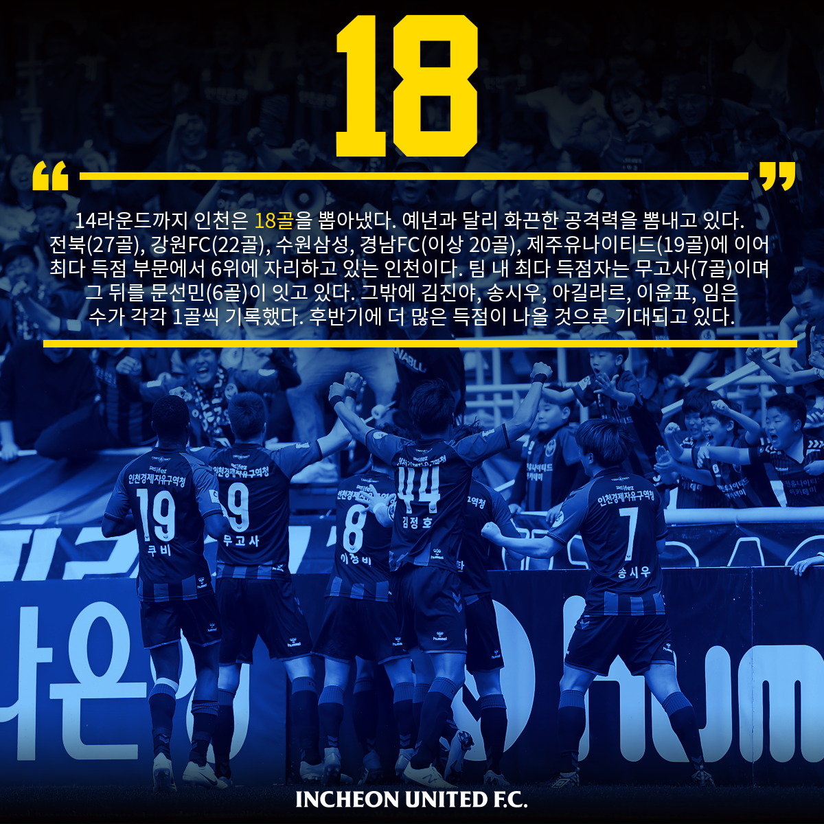 [전반기 결산] 숫자로 되돌아본 2018시즌 인천유나이티드 전반기