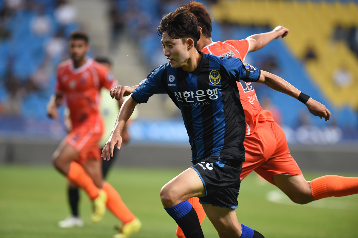 이날 경기의 균형은 전반 41분에 무너졌다. 포천 문전에서 혼전 상황이 빚어진 가운데 공격에 가담한 김한빈이 후방으로 내준 볼을 임은수가 강력한 중거리 슛으로 연결하며 포천의 골망을 가르며 인천이 앞서 나갔다. 그렇게 양 팀의 전반전은 1-0으로 인천이 앞서 나간 채 끝났다.