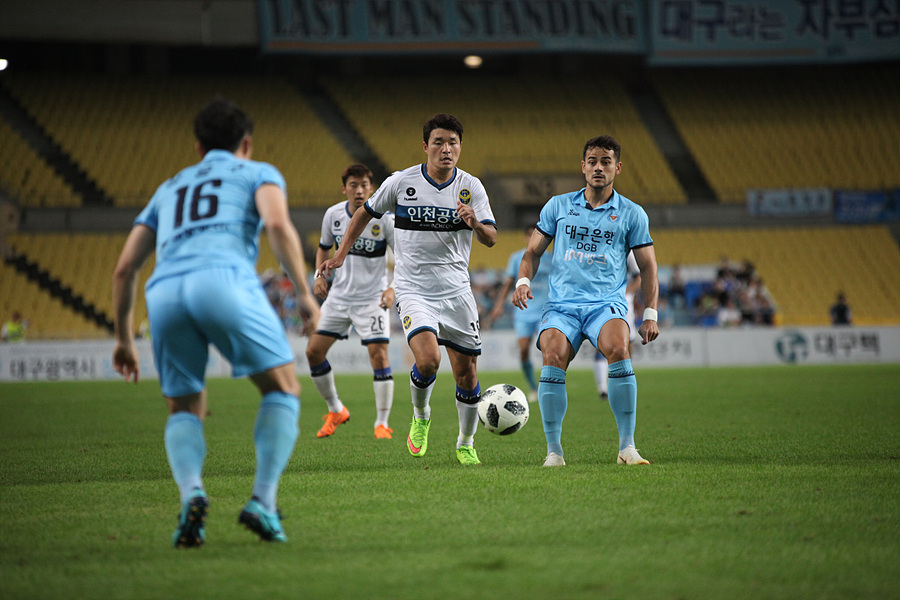 안데르센 감독이 이끄는 인천은 8월 11일 대구스타디움에서 펼쳐진 ‘KEB하나은행 K리그 1 2018’ 22라운드 대구FC와의 원정경기에서 1-2로 패하며 잔류 싸움에 뒤처지게 되었다.