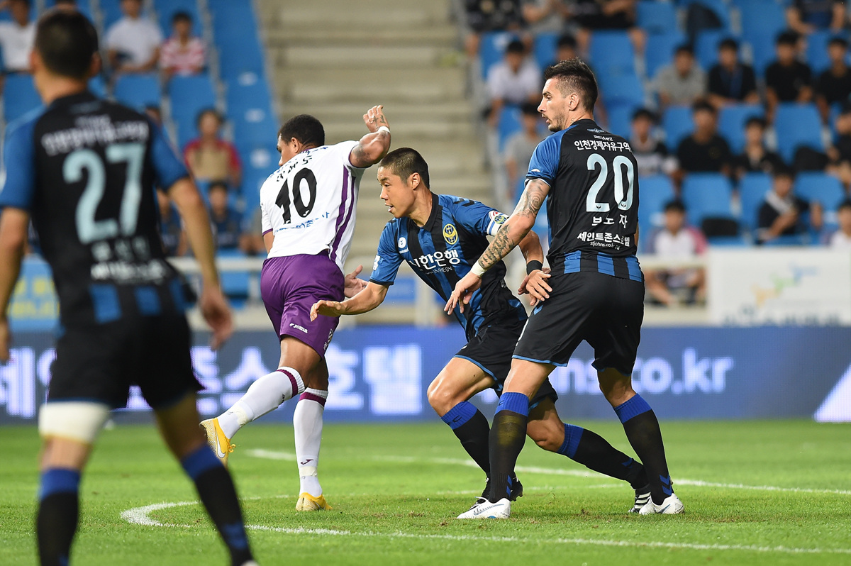 지난 22일. 태풍 솔릭의 영향으로 제주와 수원삼성과의 25라운드 맞대결이 무기한 연기됐다. 결과적으로 제주는 주중 경기를 치르지 않아 체력적인 부분에서 우위를 점한 상황 속에 인천을 상대한다. 반대로 인천은 주중 경기 소화 및 장거리 이동 등으로 체력적인 열세를 안는다.