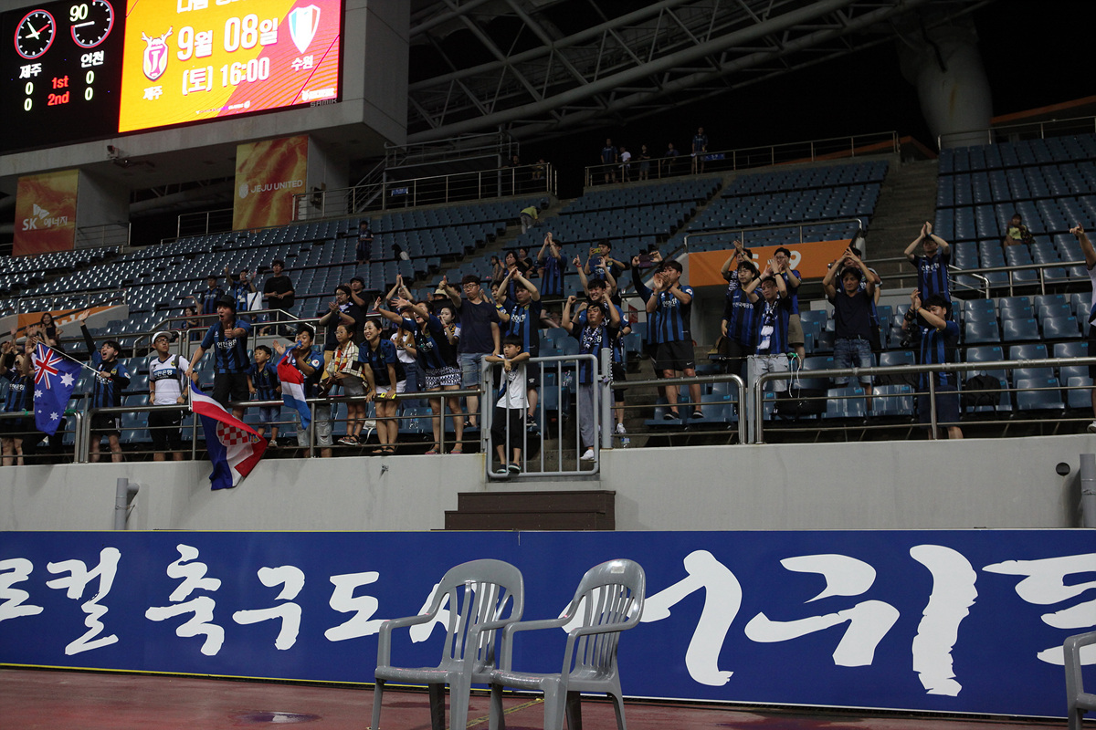 후반 시간이 점점 흐를수록 인천이 체력적으로 밀리는 모습을 보였다. 후반 22분 제주 박진포의 슈팅과 이어진 코너킥을 김동민이 연이어 몸을 던져 막아냈다. 인천은 문선민이 최전방과 측면에서 고군분투하며 공격을 이끌었지만 제주의 수비벽을 뚫기에는 역부족이었다.