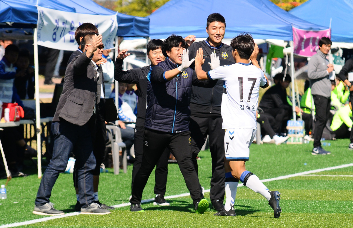 이어 전반 17분 최세윤의 슈팅은 상대 골키퍼 선방에 가로 막혔다. 이후 팽팽한 공방전이 계속 이어졌다. 전반 28분에는 김채운의 코너킥을 이호재가 헤더로 마무리했지만 골문을 살짝 빗겼다. 전반 막판 황정욱의 회심의 헤더도 가로 막힌 가운데 전반전은 0-0으로 끝났다.