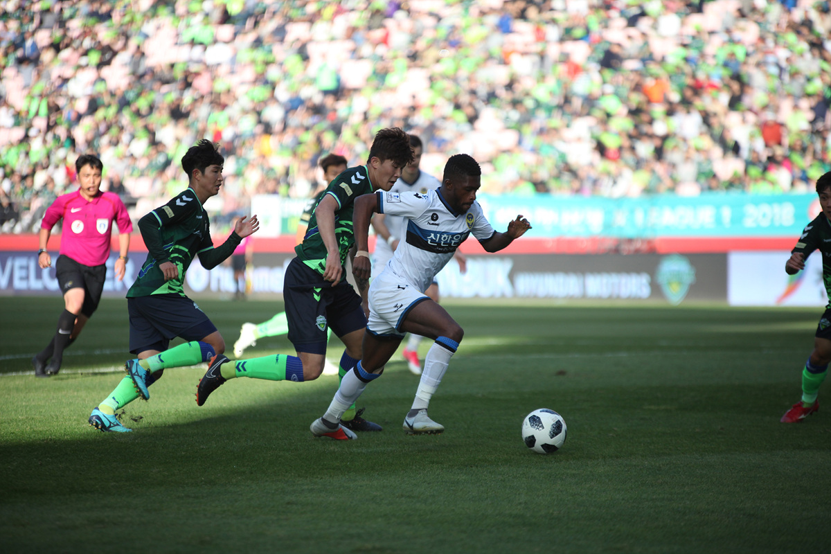 전반 초반 인천이 기선 제압에 나섰다. 전반 9분 남준재가 측면에서 볼을 살려낸 다음 크로스 내준 볼을 무고사가 침착한 마무리로 선제골을 뽑아냈다. 전북이 곧바로 반격에 나섰다. 전반 20분 한교원의 측면 크로스를 김신욱이 헤더로 마무리하면서 승부를 원점으로 돌렸다.