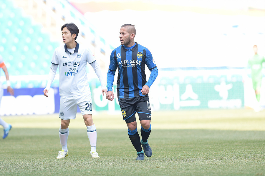 인천은 올 시즌 대구와 3차례 맞붙어 1승 1무 1패를 기록했다. 안방에서 치른 3라운드(3/17) 맞대결에서는 0-0 무승부를 기록했고, 22라운드(8/11) 원정경기에서는 부노자가 K리그 데뷔골을 터트렸지만 1-2로 석패했다. 그리고 가장 최근 맞대결이었던 32라운드(10/6) 원정경기에서는 문선민, 무고사의 득점에 힘입어 인천이 2-1로 승리했다. 그야말로 백중세의 흐름이다.