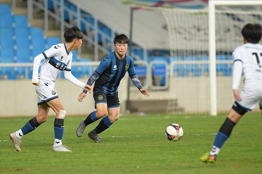 이에 맞선 인천중은 4-2-3-1 포메이션으로 선발 라인업을 꾸렸다. 최전방에 박상연이 나섰고 민주원, 민경빈, 이상윤이 이선에 배치됐다. 박수철과 김병규가 더블 보란치를 구성했고 수비라인은 황지환, 심종수, 유지성, 장지용이 구성했다. 골문 앞에는 김희준이 출격했다.