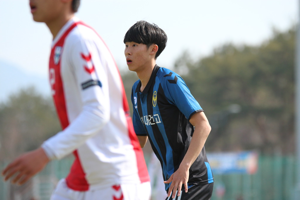 [UTD기자단=고성] 경기장 측면을 종횡무진 빠르게 누비며 맹활약을 선보였다. 인천유나이티드 U-18 대건고의 공격수 김민석은 1골 2도움을 기록하며 팀의 결승 진출을 이끌었다.