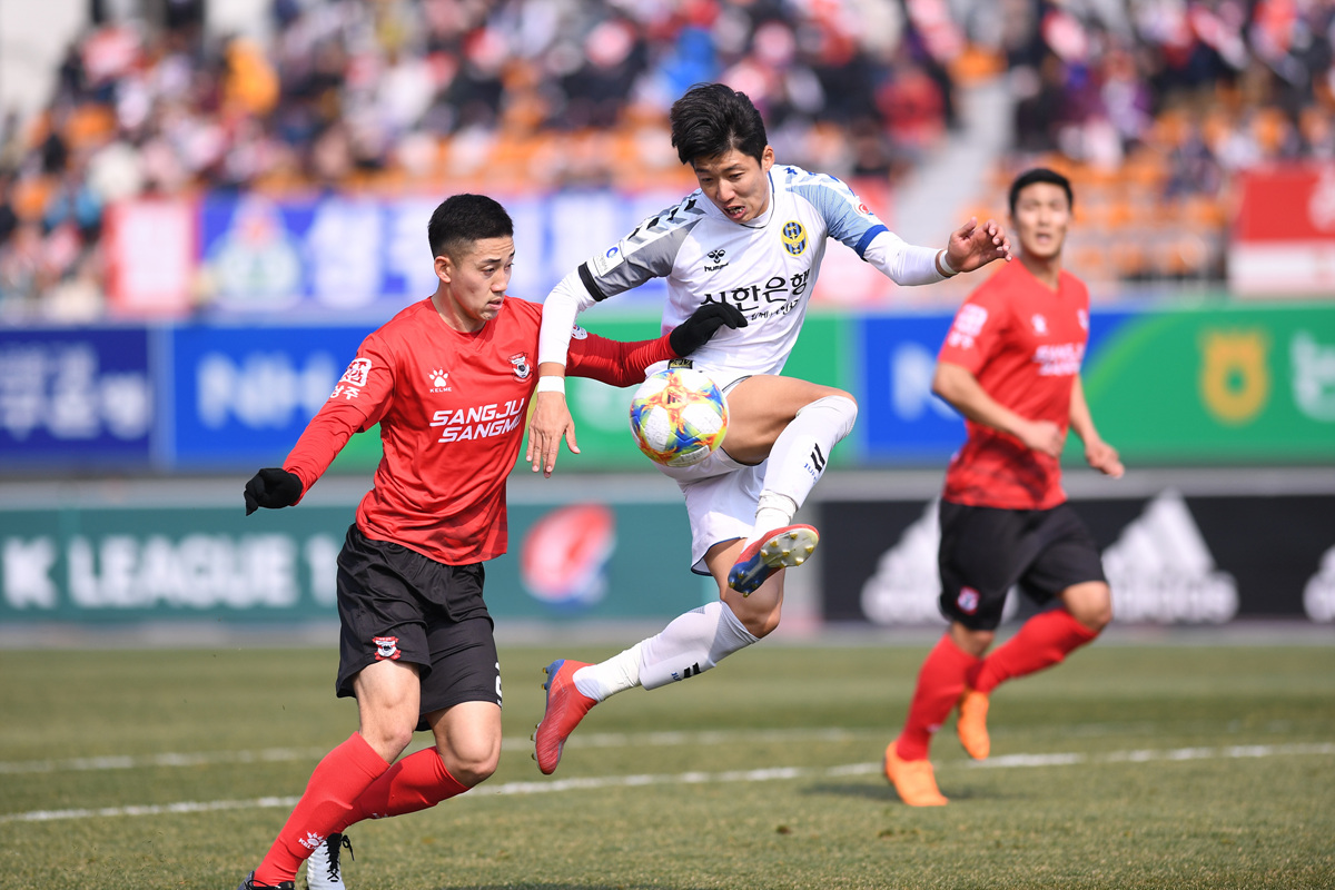 이후 양 팀의 팽팽한 공방전이 이어졌다. 전반 19분 하마드, 전반 21분과 39분 김진야가 각각 슈팅을 시도했지만 번번이 윤보상의 선방에 가로 막히며 아쉬움을 삼켜야 했다. 상주는 빈번한 잔 실수에 발목을 잡힌 가운데 전반전은 그대로 득점 없이 0-0으로 마무리됐다.